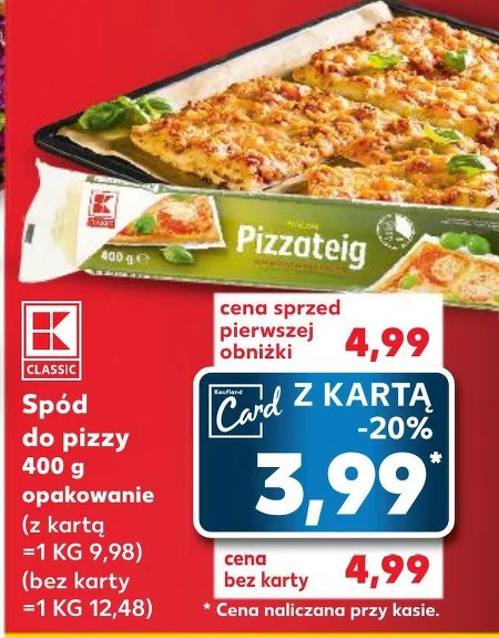 Spód do pizzy: 400 g. Najniższa cena z 30 dni przed obniżką: 4,99 zł.