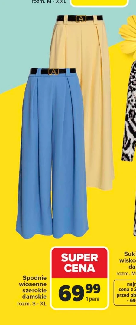 Spodnie wiosenne szerokie damskie w rozmiarach S - XL są dostępne w ofercie Carrefour w super cenie 69,99 za jedną parę. Szeroki krój tych spodni sprawia, że są one wygodnym wyborem do codziennych stylizacji w okresie wiosennym. To praktyczne rozwiązanie dla kobiet szukających komfortowego ubioru na cieplejsze dni. Warto skorzystać z tej okazji cenowej, póki produkt jest dostępny w sprzedaży. Oferta ważna od 2026-04-07 do 2026-04-18 Źródło: gazetka Carrefour