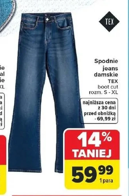 Spodnie jeans damskie TEX boot cut rozm. S - XL najniższa cena z 30 dni przed obniżką - 69,99 zł