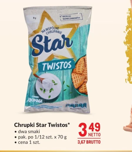 Star Twistos Przekąski ziemniaczane o smaku fromage śmietanowo-cebulowym 70 g - Oferta archiwalna