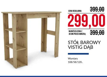 Stół BAROWY VISTIG DĄB Wymiary 108/58/120.