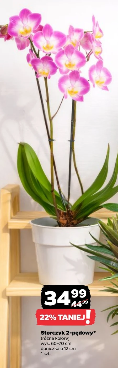 Storczyk 2-pędowy występuje w ofercie Netto w cenie 34,99 zł, po obniżce z 44,99 zł, co oznacza 22% taniej. Roślina osiąga wysokość 60-70 cm i jest dostarczana w doniczce o średnicy 12 cm. Storczyk to elegancka roślina doniczkowa, która idealnie sprawdzi się jako ozdoba wnętrz, dodając im wyjątkowego charakteru i świeżości. Jego dwupędowa budowa zapewnia obfite i długotrwałe kwitnienie w różnych kolorach. To doskonała okazja, aby wprowadzić do swojego domu odrobinę egzotyki i cieszyć się pięknem storczyka w atrakcyjnej cenie. Sprawdź dostępność i nie przegap tej wyjątkowej oferty. Oferta ważna od 2026-04-16 do 2026-04-18 Źródło: gazetka NettoWłącz powiadomienia o ulubionych produktach: