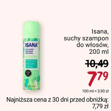 Isana, suchy szampon do włosów, 200 ml Najniższa cena z 30 dni przed obniżką: 7,79 zł.