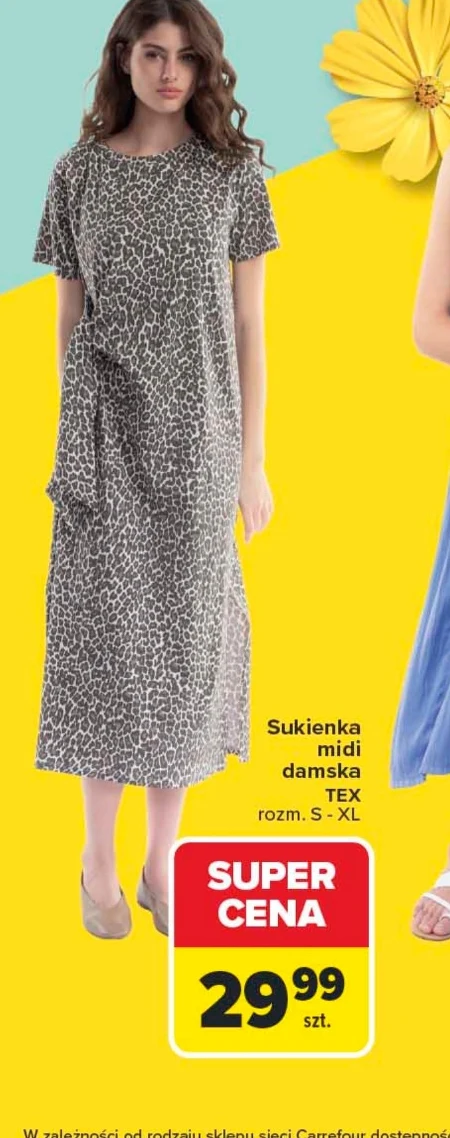 Sukienkę damską marki TEX można kupić w Carrefour w super cenie 29,99 zł za sztukę. Ta elegancka sukienka o długości midi to idealny wybór na co dzień, jak i na specjalne okazje. Dostępna w rozmiarach S do XL, zapewni komfort i swobodę ruchów. Sprawdź aktualną ofertę i nie przegap okazji, aby wzbogacić swoją garderobę o ten uniwersalny element. Oferta ważna od 2026-04-07 do 2026-04-18 Źródło: gazetka Carrefour