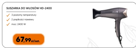 SUSZARKA DO WŁOSÓW HD-2400 3 poziomy temperatury 2 prędkości nawiewu moc: 2400 W