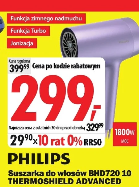Suszarka do włosów BHD720 10 THERMOSHIELD ADVANCED Funkcja zimnego nadmuchu Funkcja Turbo Jonizacja