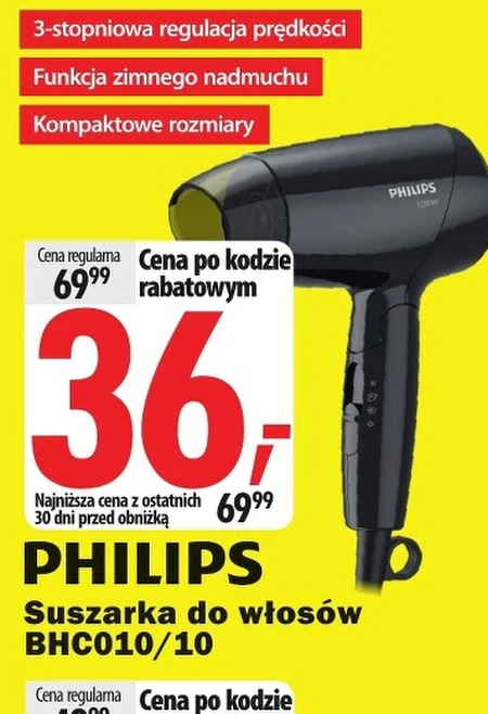 Suszarka do włosów BHC010/10 3-stopniowa regulacja prędkości Funkcja zimnego nadmuchu Kompaktowe rozmiary