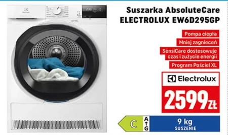 Suszarka AbsoluteCare ELECTROLUX EW6D295GP Pompa ciepła Mniej zagnieceń SensiCare dostosowuje czas i zużycie energii Program Pościel XL
