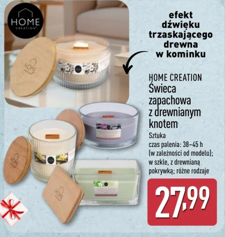 HOME CREATION Świeca zapachowa z drewnianym knotem Sztuka czas palenia: 38-45 h (w zależności od modelu); w szkle, z drewnianą pokrywką; różne rodzaje