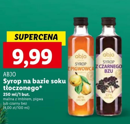 ABJO Syrop na bazie soku tłoczonego* 250 ml/1 but. malina z imbirem, pigwa lub czarny bez (4,00 zł/100 ml)
