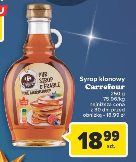 Syrop klonowy Carrefour 250 g 75,96/kg najniższa cena z 30 dni przed obniżką - 18,99 zł