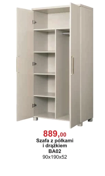 Szafa z półkami i drążkiem występuje w ofercie Bodzio w cenie 889,00 zł. To funkcjonalne rozwiązanie do przechowywania ubrań i akcesoriów, idealne do sypialni, pokoju dziennego lub przedpokoju. Szafa o wymiarach 90x190x52 cm oferuje zarówno przestrzeń na powieszenie odzieży dzięki drążkowi, jak i wygodne półki na swetry, buty i inne przedmioty. Prosta konstrukcja i solidne wykonanie sprawiają, że mebel będzie służył przez długi czas. Warto rozważyć tę ofertę, jeśli poszukujesz praktycznego i niedrogiego sposobu na uporządkowanie przestrzeni w swoim domu.