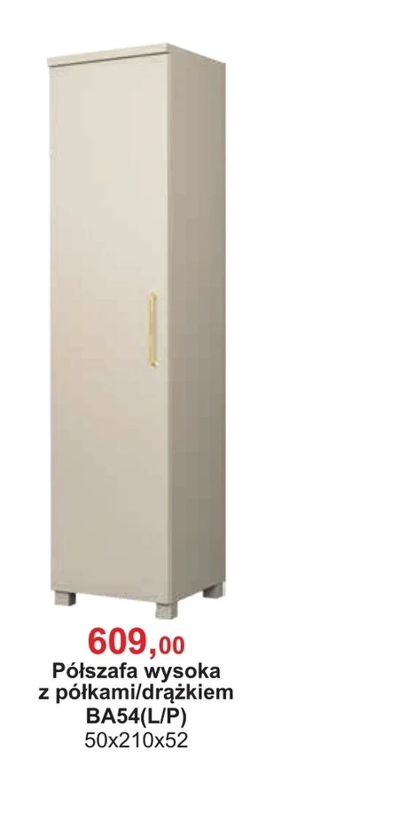 Półszafa wysoka jest dostępna w ofercie Bodzio w cenie 609,00 zł. To praktyczne rozwiązanie do przechowywania, które dzięki połączeniu półek i drążka pozwala na uporządkowanie zarówno ubrań, jak i innych przedmiotów. Wymiary półszafy to 50x210x52 cm, a model oznaczony jest jako BA54(L/P). Taka półszafa sprawdzi się w sypialni, salonie czy pokoju młodzieżowym, pomagając w utrzymaniu porządku w każdym wnętrzu. Warto skorzystać z możliwości, jaką daje ta funkcjonalna propozycja, by cieszyć się lepiej zorganizowaną przestrzenią.