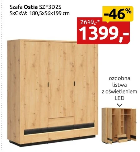 Szafa Ostia SZF3D2S SxGxW: 180,5x56x199 cm