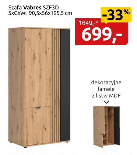 Szafa Vabres SZF3D SxGxW: 90,5x56x195,5 cm