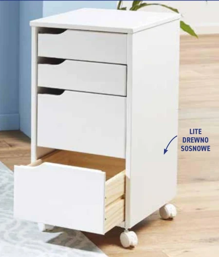 Szafka drewniana na kółkach.