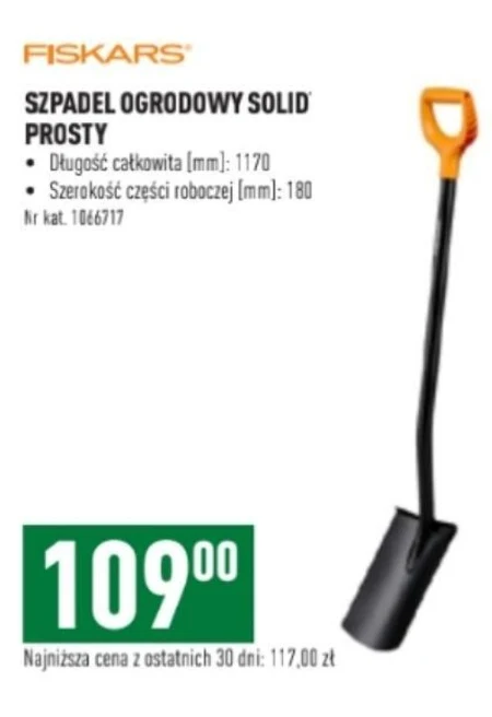 SZPADEL OGRODOWY SOLID PROSTY · Długość całkowita [mm]: 1170 · Szerokość części roboczej [mm]: 180 Nr kat. 1066717