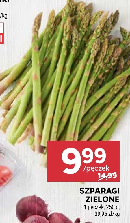 SZPARAGI ZIELONE 1 pęczek; 250 g 39,96 zł/kg Świeże, zielone szparagi to idealny składnik wiosennych dań. W gazetce Stokrotka można znaleźć je w atrakcyjnej cenie, pozwalając na przygotowanie wykwintnych potraw bez obciążania budżetu. Sprawdzą się zarówno gotowane, jak i grillowane, a także jako dodatek do sałatek czy omletów - warto przejrzeć aktualną Stokrotka, by nie przegapić tej oferty. Znajdziesz tę pozycję gdzieś w środku najnowszej gazetki.