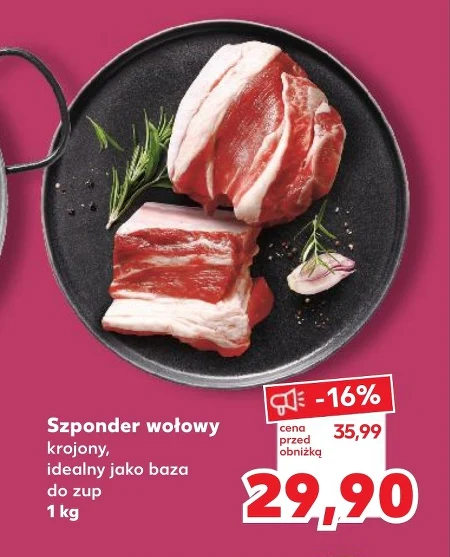 Szponder wołowy krojony jest dostępny w ofercie Kaufland w cenie 29,90 zł za kilogram, obniżonej z 35,99 zł, co stanowi 16% zniżki. Ten produkt to idealna baza do przygotowania aromatycznych i rozgrzewających zup. Krojony szponder wołowy to wygodne rozwiązanie, oszczędzające czas w kuchni, a jego smak wzbogaci każde danie. Warto skorzystać z tej okazji i zaopatrzyć się w porządny składnik do pysznych, domowych zup. Oferta ważna od 2026-04-09 do 2026-04-22 Źródło: gazetka Kaufland