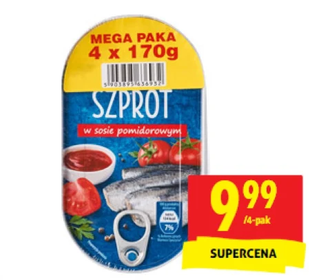 Szprot w sosie pomidorowym 4 x 170 g.