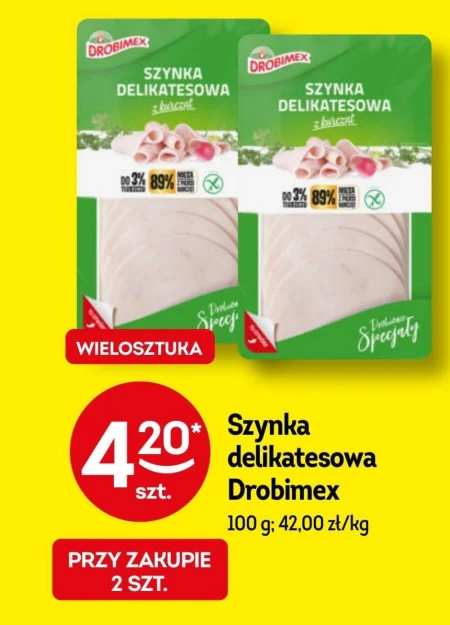 Szynka delikatesowa Drobimex 100 g; 42,00 zł/kg