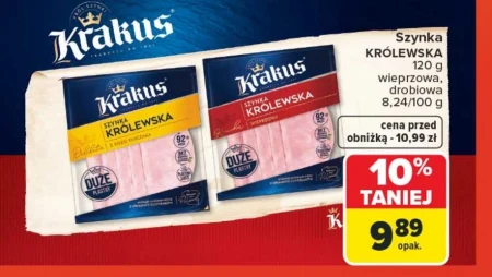 Szynka KRÓLEWSKA 120 g wieprzowa, drobiowa 8,24/100 g cena przed obniżką - 10,99 zł