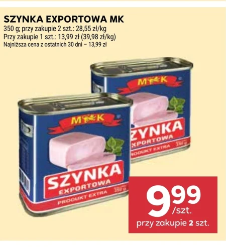 SZYNKA EXPORTOWA MK 350 g; przy zakupie 2 szt .: 28,55 zł/kg Przy zakupie 1 szt .: 13,99 zł (39,98 zł/kg) Najniższa cena z ostatnich 30 dni - 13,99 zł