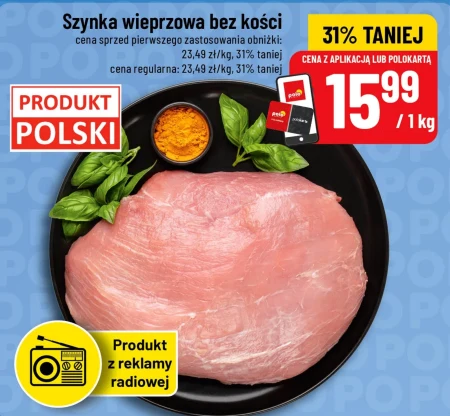 Szyonka wieprzowa bez kości cena sprzed pierwszego zastosowania obniżki: 23,49 zł/kg, 31% taniej cena regularna: 23,49 zł/kg, 31% taniej