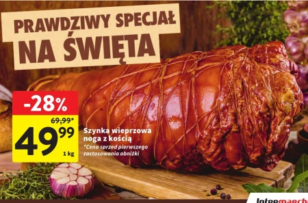 Szyinka wieprzowa noga z kością w Intermarche kosztuje teraz 49,99 zł za kilogram, dzięki 28% obniżce z ceny 69,99 zł. Produkt dostępny jest w gramaturze 1 kg. To idealna baza do przygotowania wielu dań, takich jak pieczona szyinka, kotlety schabowe czy aromatyczne pasztety. Obniżka sprawia, że to doskonała okazja, aby zaopatrzyć się w wysokiej jakości mięso w atrakcyjnej cenie.