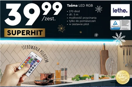 Taśma LED RGB • 270 diod • dł.: 5 m • możliwość przycinania • tylko do pomieszczeń • w zestawie pilot