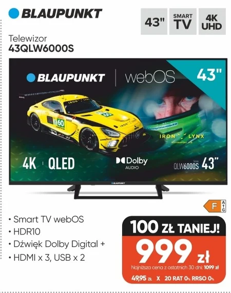 Telewizor 43QLW600OS · Smart TV webOS · HDR10 · Dźwięk Dolby Digital + · HDMI x 3, USB × 2