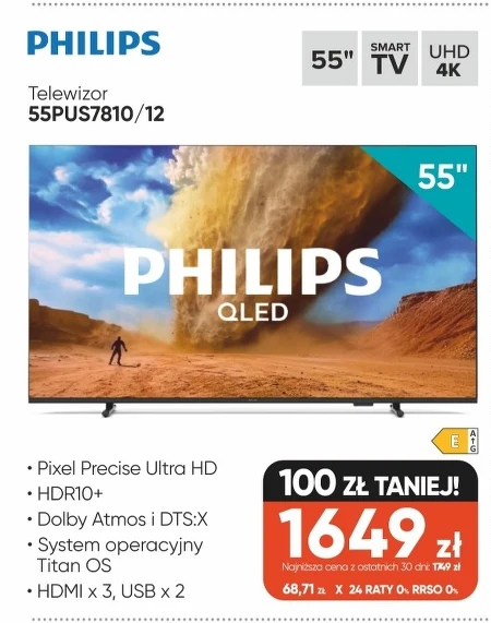 Telewizor 55PUS7810/12 • Pixel Precise Ultra HD • HDR10+ • Dolby Atmos i DTS:X • System operacyjny Titan OS • HDMI x 3, USB x 2