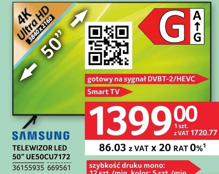 TELEWIZOR LED 50" UE50CU7172 36155935 669561 gotowy na sygnał DVBT-2/HEVC Smart TV