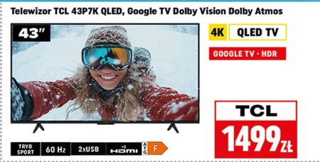 Telewizor TCL 43P7K QLED, Google TV Dolby Vision Dolby Atmos 4K QLED TV GOOGLE TV . HDR
