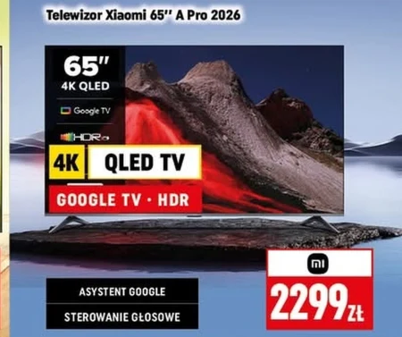 Telewizor Xiaomi 65” A Pro 2026 65” 4K QLED Google TV HDR 4K QLED TV GOOGLE TV · HDR ASYSTENT GOOGLE STEROWANIE GŁOSOWE