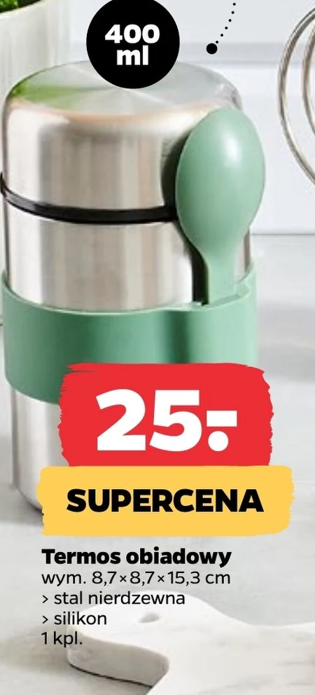 Termos obiadowy wym. 8,7 x 8,7 x 15,3 cm › stal nierdzewna › silikon 1 kpl.