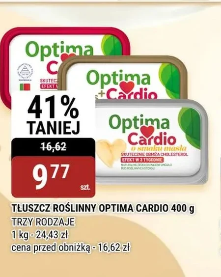 TŁUSZCZ ROŚLINNY OPTIMA CARDIO 400 g TRZY RODZAJE 1 kg - 24,43 zł cena przed obniżką - 16,62 zł
