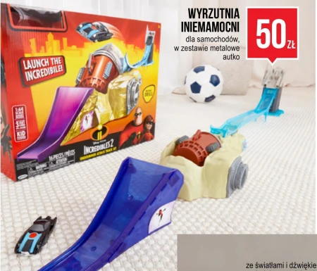 Wyrzutnia Iniemamocni dla samochodów. W zestawie metalowe autko.