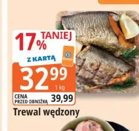 Trewal wędzony w E.Leclerc jest dostępny w cenie 32,99 zł za 1 kg. Dzięki karcie stałego klienta można go kupić 17% taniej niż standardowa cena 39,99 zł. Idealnie sprawdzi się jako dodatek do kanapek lub składnik przekąsek. Promocja obowiązuje na 1 kg produktu.