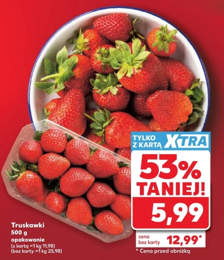 Truskawki 500 g opakowanie (z kartą =1 kg 11,98) (bez karty =1 kg 25,98) 5,99 cena bez karty 12,99* * Cena przed obniżką