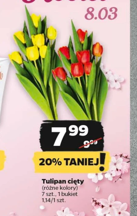 Tulipan cięty (różne kolory) 7 szt., 1 bukiet 1,14/1 szt.