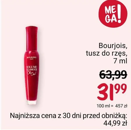 Bourjois, tusz do rzęs, 7 ml. Najniższa cena z 30 dni przed obniżką: 44,49 zł.