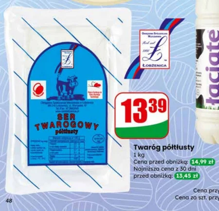 Twaróg półtłusty występuje w ofercie Dino w cenie 13,39 zł za kilogram. To idealny składnik do przygotowania wielu pysznych dań – od serników i pożóg, przez leniwe, po lekkie sałatki. Warto wykorzystać go także jako zdrową przekąskę, dodając do owoców lub warzyw. Aktualnie jest to najniższa cena tego produktu w ciągu ostatnich 30 dni, wcześniej oferowany był za 13,45 zł, a cena regularna to 14,99 zł.