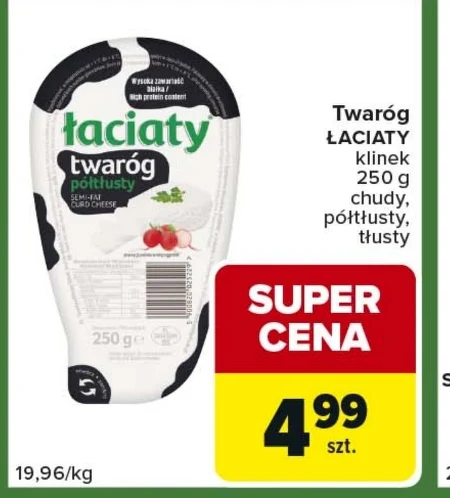 Twaróg ŁACIATY klinek 250 g chudy, półtłusty, tłusty
