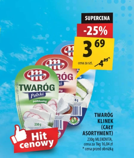 TWARÓG KLINEK (CAŁY ASORTYMENT) 230g MLEKOVITA, cena za 1kg 16,04 zł
