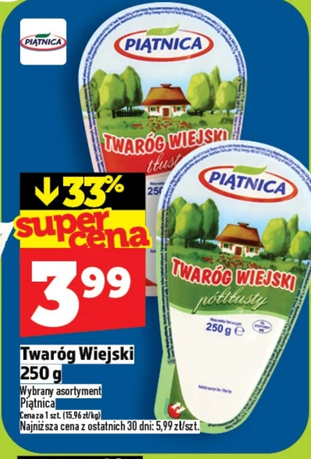 Twaróg Wiejski 250 g Wybrany asortyment Piątnica Cenaza 1 szt. (15,96 zł/kg) Najniższa cena z ostatnich 30 dni: 5,99 zł/szt.