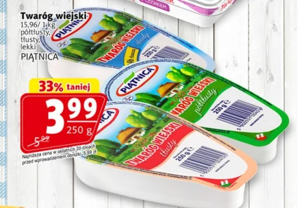 Twaróg wiejski 15,96/ 1 kg półtłusty, tłusty, lekki PIĄTNICA Świeży twaróg wiejski to doskonały składnik na pożywne śniadania, idealny do przygotowania twarożków z owocami lub słodkich deserów, a także niezastąpiony w kuchni dietetycznej ze względu na wysoką zawartość białka. Można go wykorzystać w przepisach na fit wypieki, jak serniki na bazie twarogu, czy też dodawać do koktajli proteinowych, wspomagając budowę masy mięśniowej i regenerację po treningu. Ten półtłusty, tłusty lub lekki produkt Piątnicy sprawdzi się w każdym domu, oferując wszechstronność i zdrowie w każdym kęsie.