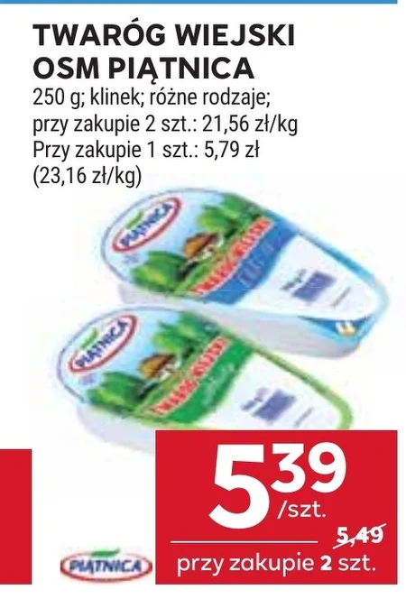 TWARÓG WIEJSKI OSM PIĄTNICA 250 g; klinek; różne rodzaje; przy zakupie 2 szt .: 21,56 zł/kg Przy zakupie 1 szt .: 5,79 zł (23,16 zł/kg)