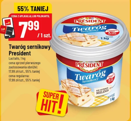 Twaróg sernikowy President w POLOmarket można teraz kupić za 7,99 zł za kilogram. Produkt Lactalis o gramaturze 1 kg jest dostępny z 55% zniżką, co oznacza znaczną obniżkę ceny z 17,99 zł. Twaróg ten idealnie sprawdzi się do przygotowania tradycyjnego sernika lub innych słodkich wypieków. Promocja obowiązuje przy zakupie z aplikacją lub POLOKARTĄ, co czyni tę ofertę wyjątkowo atrakcyjną dla osób planujących domowe pieczenie.