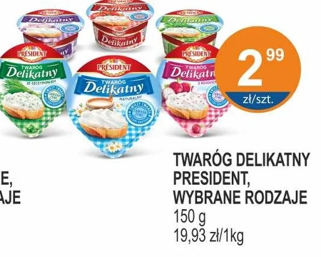 TWARÓG DELIKATNY PRESIDENT, WYBRANE RODZAJE 150 g